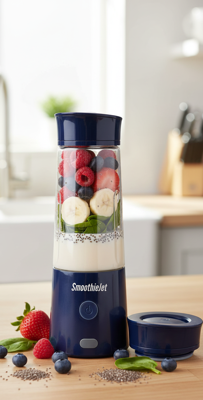 Pripravte si super-zdravé a chutné smoothie plné antioxidantov za menej ako 2 minúty, kdekoľvek ste, prispôsobené pre objem vášho SmoothieJet NeoJet!